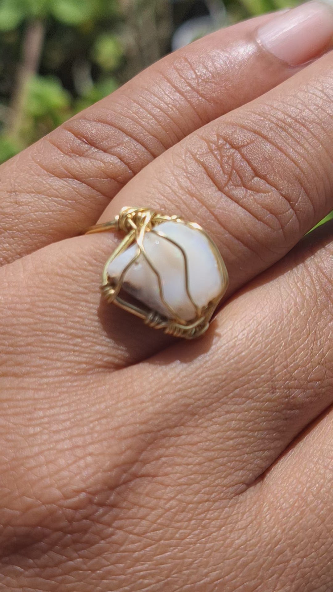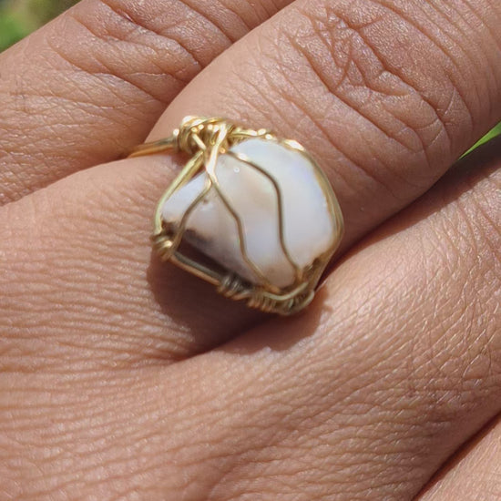 Envuelto a mano en cálido latón oro, este anillo con ópalo blanco irradia sutileza y poder. Su brillo lechoso con destellos arcoíris activa la creatividad, eleva tu intuición y protege tu energía. Una joya que no solo embellece, sino que también conecta con tu alma: perfecta para quienes están en camino de sanar, crear o manifestar desde el corazón.