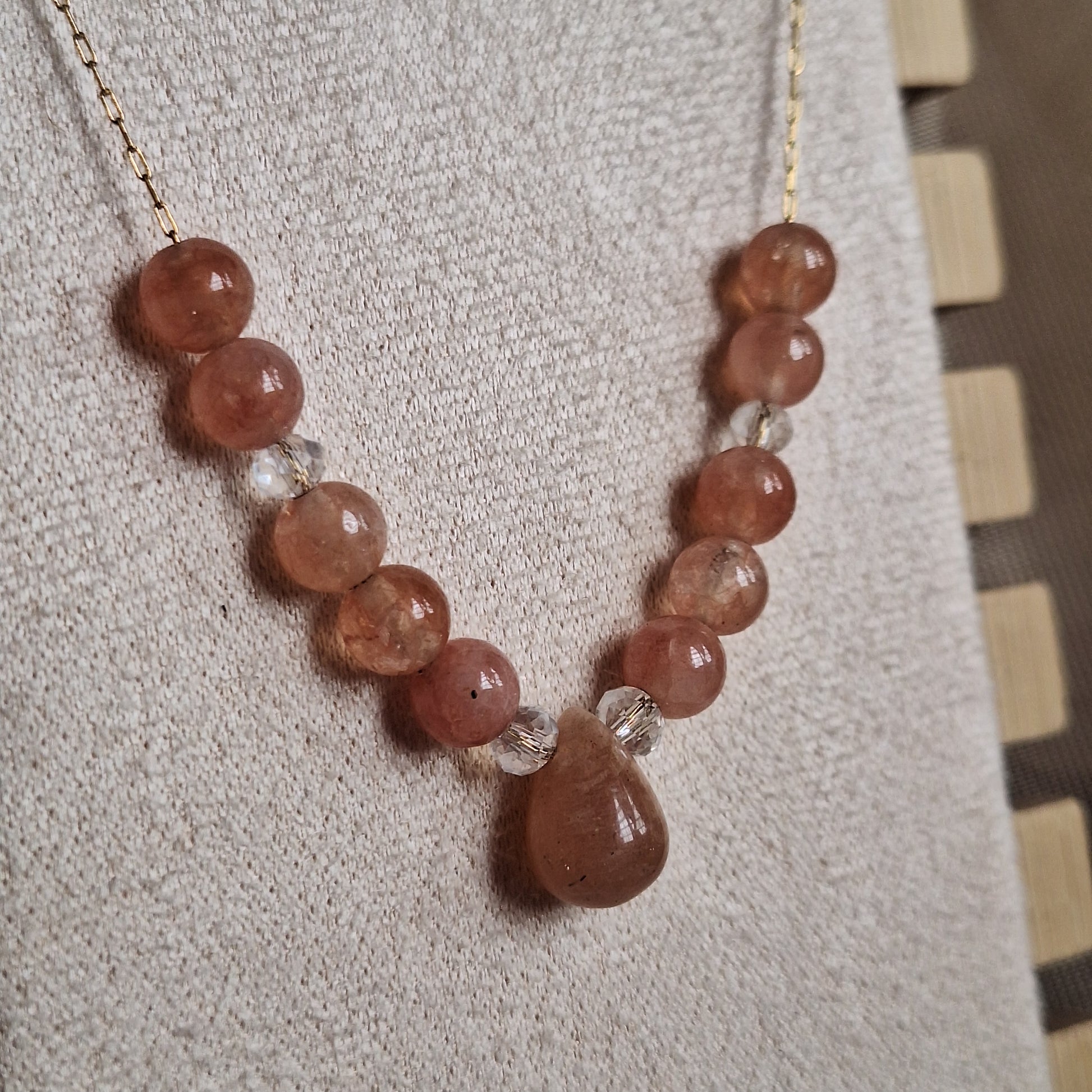 ¡Haz una declaración de moda con el collar Dorado Piedra Lunar Melocotón!