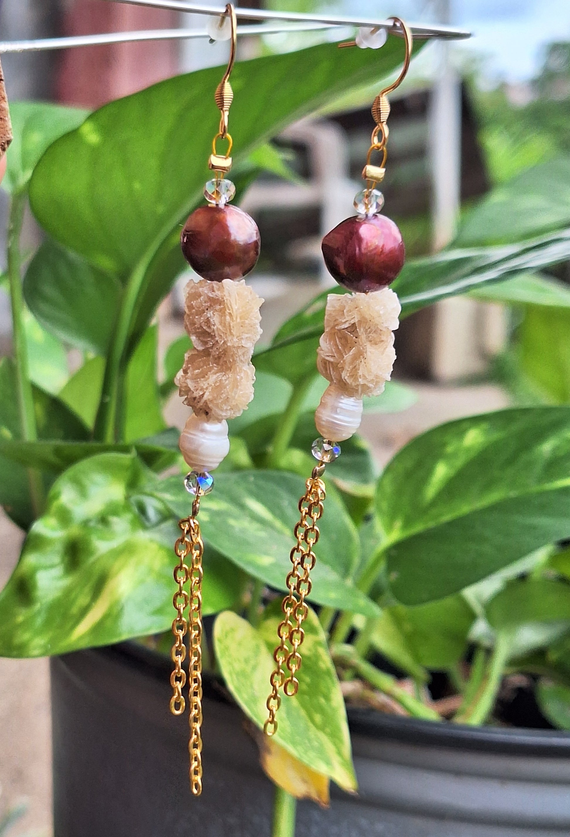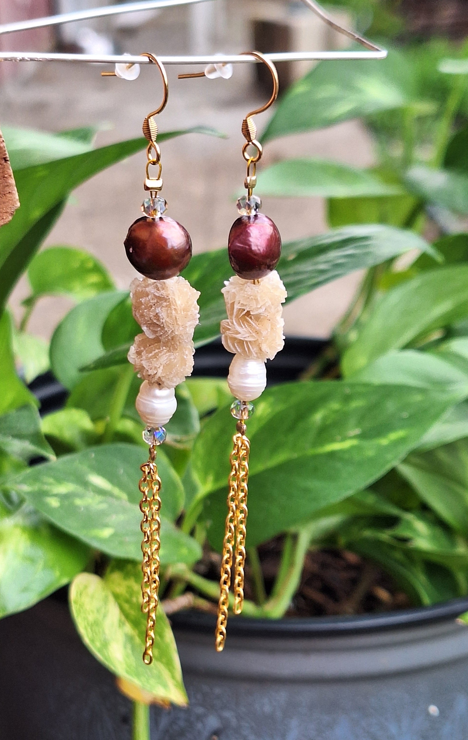Estos pendientes combinan la elegancia de las perlas con la belleza única de la rosa del desierto. Las perlas aportan un toque de sofisticación y la rosa del desierto, conocida por su resistencia y delicadeza, simboliza la belleza y fuerza en armonía. Una joya perfecta para cualquier ocasión.